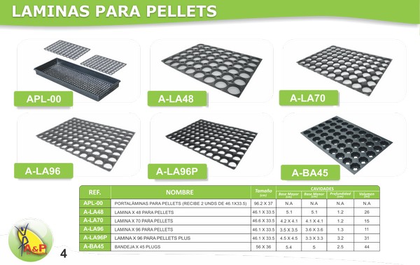 Láminas Para Pellets LAMINAS PARA PELLETS A-BA45 LAMINA PARA PELLETS 45 CAVIDADES ALVEOLOS A-LA48 LAMINA PARA PELLETS 48 CAVIDADES ALVEOLOS A-LA70 LAMINA PARA PELLETS 7 CAVIDADES